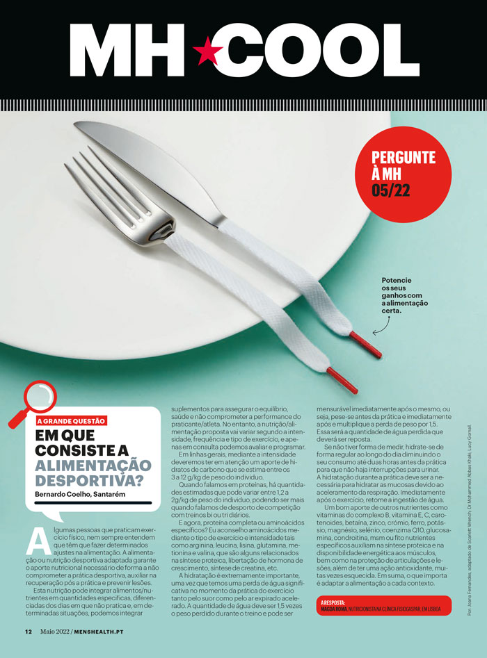 A Dra. Magda Roma, nutricionista na Fisiogaspar, esclarece dúvidas num artigo para a revista Men´s Health, sobre o tema “Em que consiste a alimentação desportiva?”.