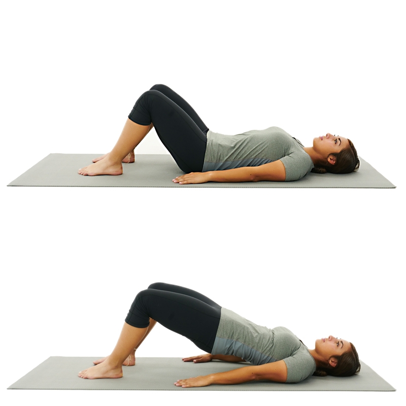 Deitado em decubito dorsal e as joelhos flectidas a 90º deverá fazer a elevação da bacia ate que o tronco fique no prolongamento das pernas e quando regressa à posição inicial não deverá tocar o chão, deixando sempre alguns centrimetros de distância do chão.