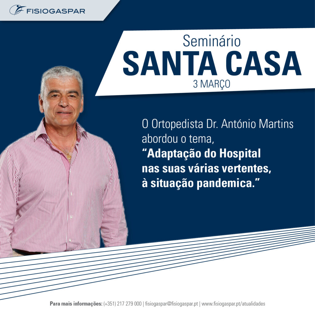 O Dr. António Martins Ortopedista interno da Fisiogaspar, especialista na Cirurgia Artroscópica e Reconstrutiva do Joelho, detendo um currículo ímpar no acompanhamento de atletas de alta competição, marcou presença num seminário organizado pela Santa Casa sob o tema “Adaptação do Hospital nas suas várias vertentes, à situação pandémica”.
