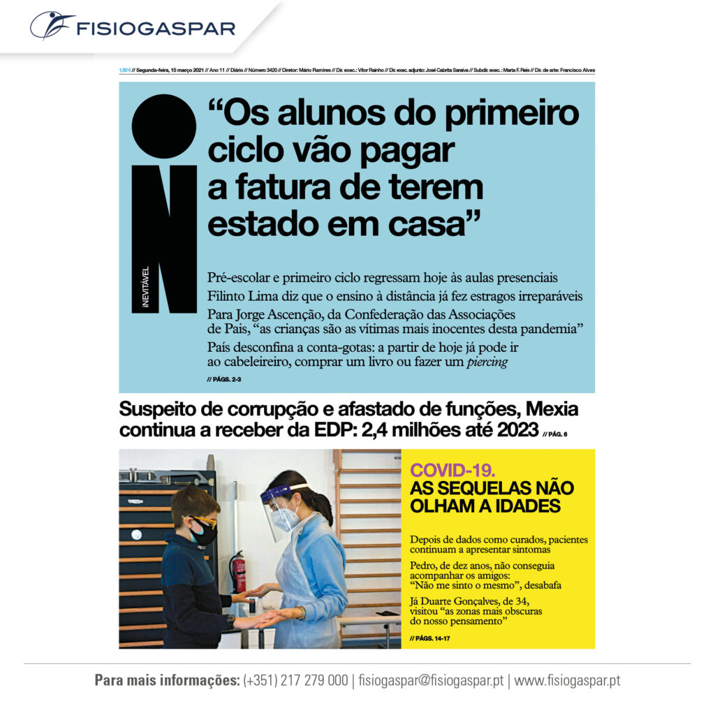 O Jornal “i” publicou hoje uma reportagem sobre o “Sindrome pós-covid-19” com destaque de capa à Fisiogaspar e aos testemunhos dos nossos pacientes Pedro Pinto (10 anos) em recuperação, e Chirague Bhanji (43 anos) já recuperado após reabilitação na Fisiogaspar.